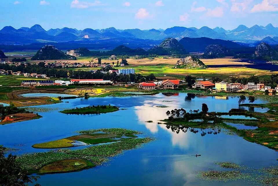国家AAAA级旅游景区,著名影视作品“爸爸去哪儿”以及“三生三世.十里桃花”拍摄地。是发育典型的喀斯特岩溶地貌,以“水上田园、湖泊峰林、彝家水乡、岩溶湿地、荷花世界、候鸟天堂”六大景观而著称,这里既有桂林山水孤峰、清流、幽洞、奇石的灵秀,又有江南水乡小桥、流水、人家的古朴神韵,还有杭州西湖波光潋滟的明丽,更有比荷花淀还要浩荡的万亩荷花。