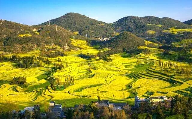 是我国的油菜生产基地县,具有油菜花之乡之称。每年的春节前后,近百万亩油菜花在罗平坝子竞相争放,放眼望去,是一片一望无际的金黄,无论什么人,凡驻足这个最大的天然花园内,无不感叹罗平是金玉满堂之乡、花的海洋。一年一度的云南罗平油菜花旅游节,将使您感受到人与自然的和谐,观赏到佳境如画的风光。登上金鸡峰,看油菜花田比较平坦,而稍远处有些孤峰拔起,很壮阔的感觉。